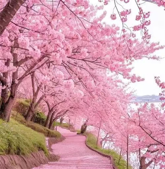 霧社櫻率先登場,花朵小巧玲瓏,潔白中透著粉嫩,猶如嬌羞的少女,在枝頭悄悄綻放,拉開了櫻花季的序幕;香水櫻香氣撲鼻,微風(fēng)拂過,甜香四溢,讓人心曠神怡;八重櫻花朵碩大,層層疊疊的花瓣簇?fù)碓谝黄穑M顯雍容華貴;富士櫻樹形優(yōu)美,花朵密集,粉白相間,宛如一片片云霞;森林皇后則以其獨(dú)特的綠色花朵,在眾多櫻花中獨(dú)樹一幟,清新淡雅,令人眼前一亮。各種櫻花姹紫嫣紅,絢麗多姿,構(gòu)成了一幅絕美的春日畫卷。