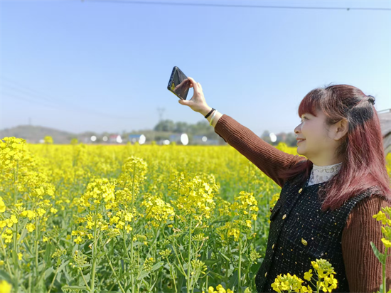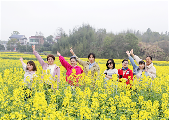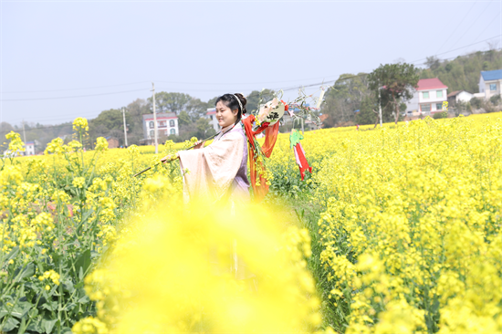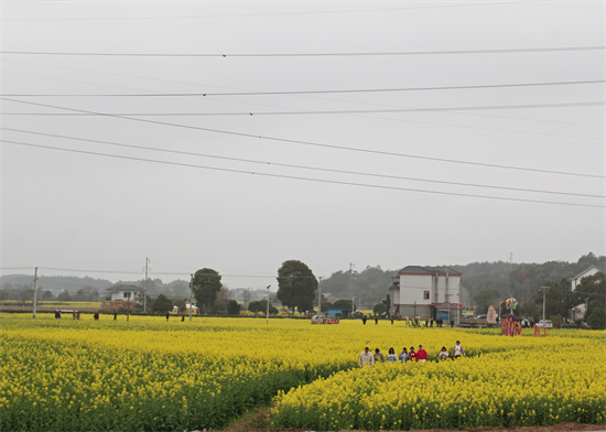 3月15日,一群從省城長沙慕名而來的游客,穿行在攸縣寧家坪鎮(zhèn)油菜花海里高興地歡呼著。