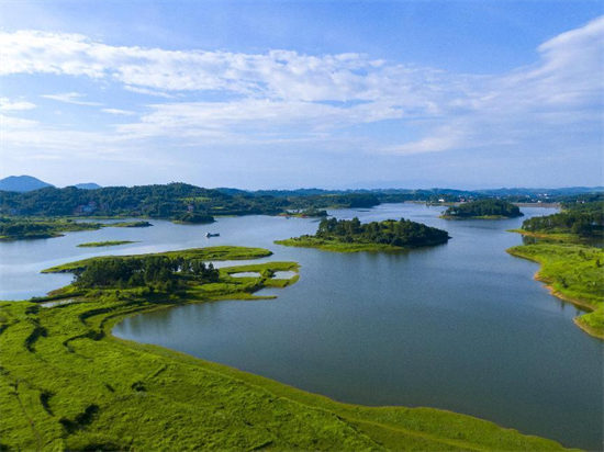 流光湖位于邵東市流光嶺鎮(zhèn),湖面開(kāi)闊,水平如鏡,藍(lán)天白云、村莊山嶺、樹(shù)木花草倒映在水里,如同一幅巨大的山水畫(huà),令人嘆為觀止。流山湖岸線曲折,湖灣眾多,有桃花灣、月亮灣等十八灣,皆是登臨攬勝的絕佳之所。西岸有一個(gè)150公頃的森林公園,山水相依,鳥(niǎo)語(yǔ)花香,景色宜人。