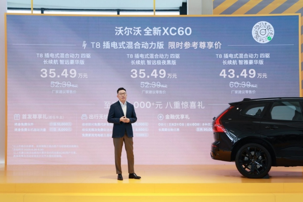 新車共推出8款車型,涵蓋燃油、插電混動兩種動力形式。其中,五款為燃油車型,限時參考尊享價為25.49萬至32.49萬元;三款為插電混動車型,限時參考尊享價為35.49萬至43.49萬元。同時,全新XC60還提供價值超過8.5萬元的八重驚喜禮。