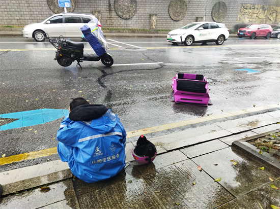 昨日(3月13日)上午,天下著雨,在長(zhǎng)沙長(zhǎng)星路與緯十二路交界路口,一名受傷的外賣(mài)小哥坐在冰冷的人行道邊,正在苦等旁邊一輛寶馬3系的車主。