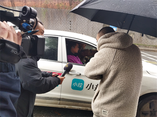 電視臺(tái)記者在采訪寶馬車司機(jī)
