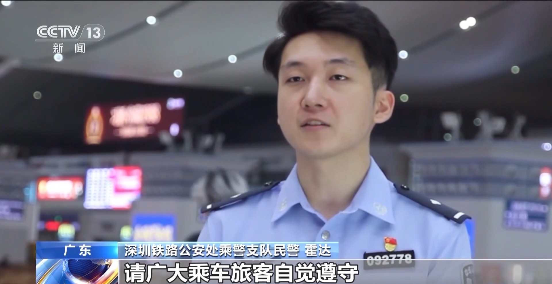 深圳北客運車間副值班員 羅敏:由于目前我們的列車開行得十分密集,一趟車的晚點將會影響后續(xù)的列車,嚴重地擾亂了列車的正常運行秩序。這種行為既是對自己的安全不負責任,還危及全車旅客的安全,影響大家的正常出行。