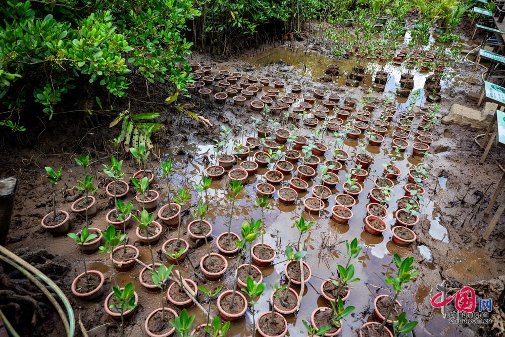 東寨港國家級自然保護(hù)區(qū)內(nèi)培育的紅樹幼苗。中國網(wǎng)記者 鄭亮攝