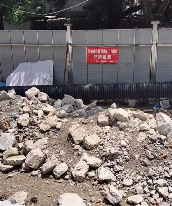 小區(qū)合法規(guī)劃大門出口,被桂林齒輪廠非法設置路障強行堵塞,導致消防車完全無法通行。該大門位置歷經(jīng)三次規(guī)劃調整(2017、2018、2020年)均未變更,其與齒輪廠間存在規(guī)劃道路。