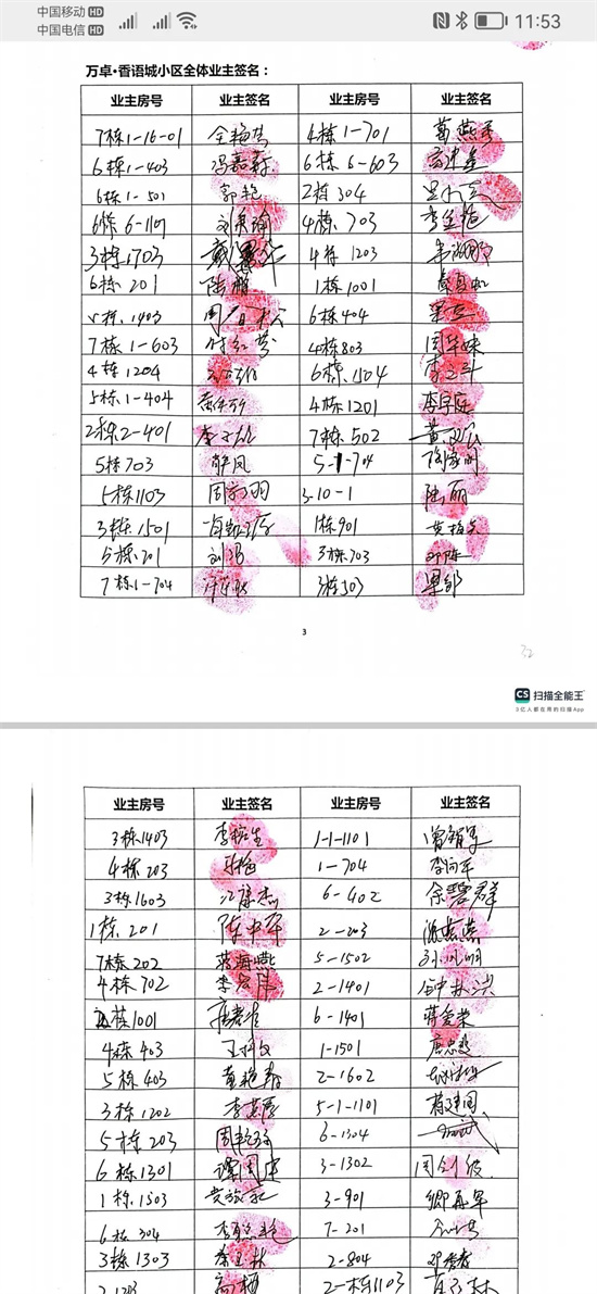 桂林市萬卓香語城全體業(yè)主(附業(yè)主實名簽名頁)