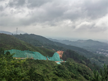 (從東北面眺望,北邊為挖去的山體,南邊則保持了原始植被)