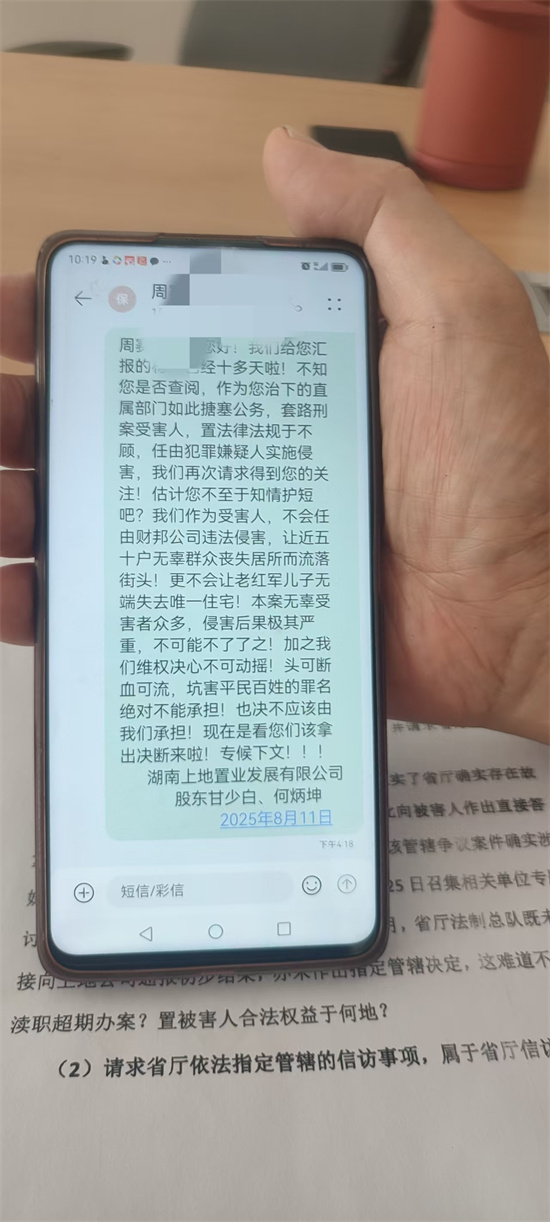 2025年7月17日,益陽市公安局赫山分局就上地公司被虛假訴訟,立案后遲遲未有進(jìn)展的問題回復(fù)了何炳坤。