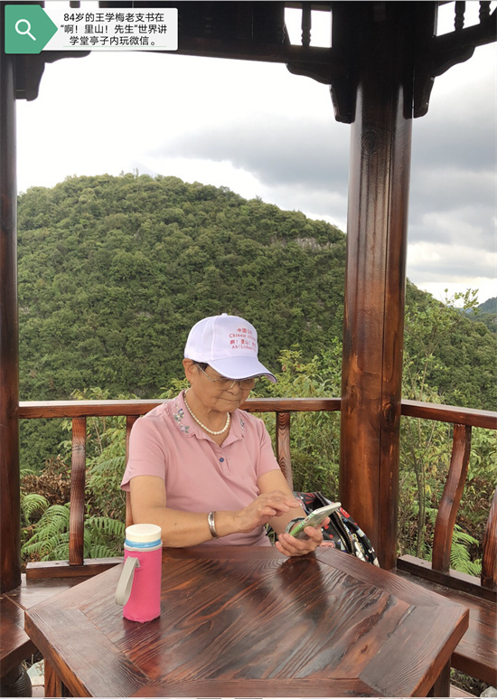 “興旺同志:你們把這條路打掃得干干凈凈的!天氣涼爽了,當?shù)氐睦习傩绽闲《伎梢陨先タ赐嫘菹?!尤其是學生們可以上去亭子里面學習做作業(yè)等!感謝參加打掃衛(wèi)生的朋友們!你們是好祥的!你們真棒!你們辛苦了!謝謝大家!”中共基層社區(qū)優(yōu)秀共產(chǎn)黨員、中共黨員50周年紀念章獲得者、貴州省畢節(jié)市金沙縣沙土區(qū)(鎮(zhèn))原沙土街道擔任二十多年支部書記、捐資兩萬元參與修建亭子和步道的84歲的王學梅老支書發(fā)出了這樣的微信回復。