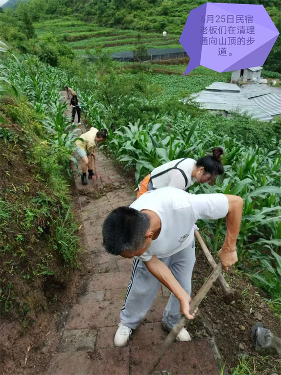 在中國畢節(jié)示范區(qū)百里杜鵑管委會鵬程街道辦事處啟化村委會統(tǒng)一協(xié)調下,由該村管轄附近民宿酒店出人出力,為中國民間“??!里山!先生”世界《講學堂》清理登山步道……