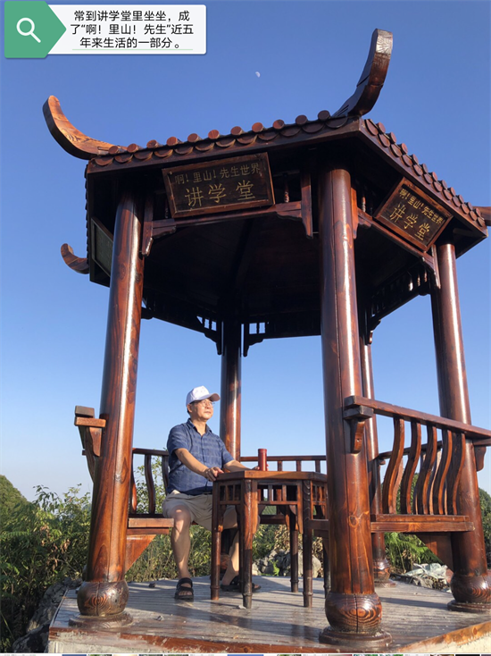 啟化,對“??!里山!先生”而言,是有感情的:“??!里山!先生”和親戚朋友五年前在此捐資了12.5萬元,在十萬彝山叢中的一個小山頂上,修建了一個世界講學堂(亭),以及通向山頂?shù)?00余步步道。