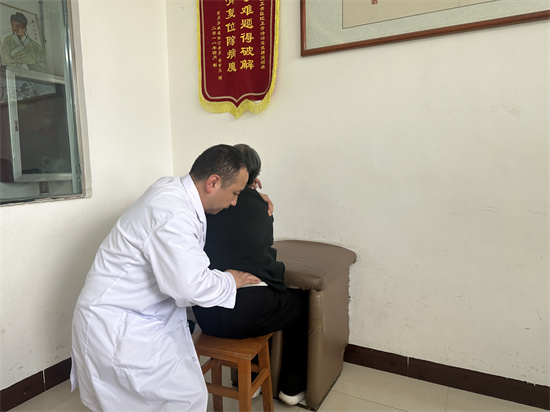 慈眉善目的雷院長,嘴帶微笑,眼睛里透著柔和的光,耐心地聽病人描述病情后,溫和地說道:“你要把心情放輕松,堅持正骨、喝中藥、做理療,疼痛就會緩解的。”病人信賴地點著頭說:“今天比剛來的時候松和多了!”