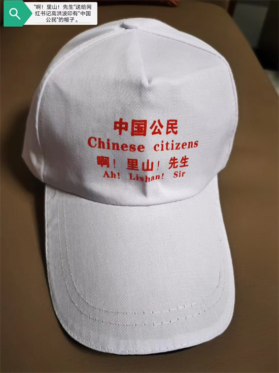 7月13日,“啊!里山!先生”又在他的微信朋友圈作了這樣的完善和補充:3.到重慶市榮昌區(qū),如果見到高洪波書記(見圖4),就送他一頂印有“中國公民”字樣的帽子(見圖5),希望他下一步,退休不退色,以一個中國公民的身份,繼續(xù)為人民服務,中國民間啊!里山!先生在民族振興的旅行線路上等他。