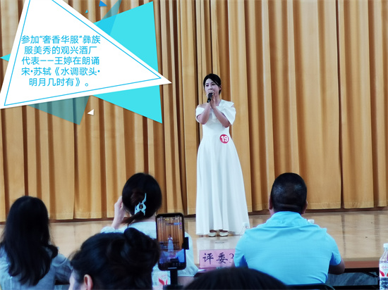 “我是來自瀘州市敘永縣觀興酒廠的代表19號,我叫王婷,今天我的節(jié)目是給大家朗誦宋•蘇軾的《水調(diào)歌頭•明月幾時(shí)有》——