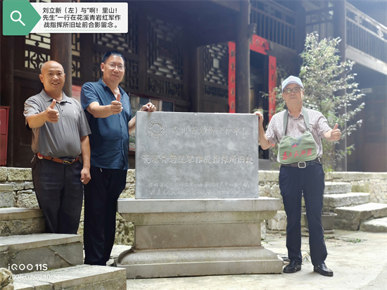 時(shí)間來去匆匆,此行的下一站是還要趕去紅軍兩次抵達(dá)的黔南布依族苗族自治州福泉市仙橋鄉(xiāng)大花水村,臨別,劉立新與“啊!里山!先生”一行在“花溪青巖紅軍作戰(zhàn)指揮所舊址”前合影留念,然后又趕去歪腳村廣場,在那里觀看了有工人正在忙著趕做的紅軍長征獅子山戰(zhàn)斗紀(jì)念碑。29日下午回到貴陽,“?。±锷?!先生”在他的微信朋友圈這樣發(fā)出——
