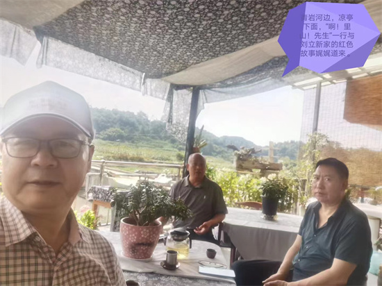 走出“花溪青巖紅軍作戰(zhàn)指揮所舊址”,來到青巖河邊小坐一會,等候“?。±锷?!先生”一行的老哥這時(shí)才介紹,原來他也姓劉,字立新。