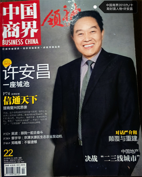 后來,從許大哥手機(jī)里的資料上看,原來他說的不是重慶的《商界》雜志,而是北京的《中國(guó)商界》雜志,而這《中國(guó)商界》雜志,就是我以前干了九年的老東家——中國(guó)商報(bào)社,許大哥做的是《中國(guó)商界》雜志2010年9-10期合刊的封面人物。