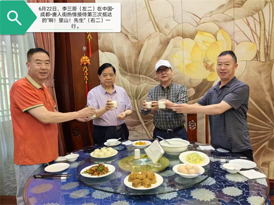 多年的相處,六大河欄目記者明顯的感覺到,“??!里山!先生”是一個務(wù)實的人,生活工作中,很少有他佩服的人,但是,對于開發(fā)中國•成都•唐人街的李三哥,“?。±锷?!先生”可是非常的敬重,在前往成都的高速公路上,他給六大河欄目記者“約法三章”并一再告誡:見了李三哥后,第一不要主動添加微信和留電話號碼,第二喝酒了要注意少說話,第三要多聽李三哥說。