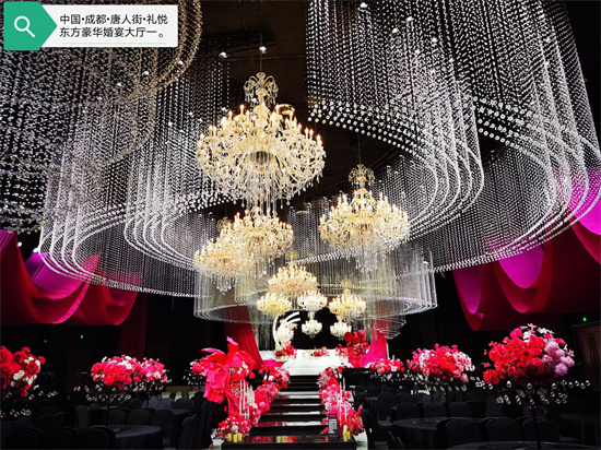 走進(jìn)婚宴大廳,當(dāng)美麗的川妹子將電燈打開的那一瞬間,確實(shí),這實(shí)在是太令人震撼了,其豪華程度可想而知:禮悅東方•喜之宴環(huán)境堪稱一絕,從踏入大門的那一刻起就讓人喜歡,宴會(huì)廳的裝修奢華而不失溫馨,水晶吊燈閃爍著璀璨的光芒,將整個(gè)空間映照得美輪美奐。