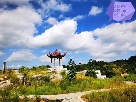 學(xué)校就是風(fēng)景區(qū),金沙五中從學(xué)生宿舍到教室到體育場(chǎng)都較為特別。走進(jìn)校園,一行人首先調(diào)研了求知亭,然后來(lái)到已有學(xué)生上課的課堂外,經(jīng)過(guò)群蛙鬧塘景點(diǎn),最后看了學(xué)生宿舍,整個(gè)是沿著學(xué)校順時(shí)針?lè)较蚶@了一圈,“啊!里山!先生”對(duì)求知亭位置表現(xiàn)出了濃厚興趣。