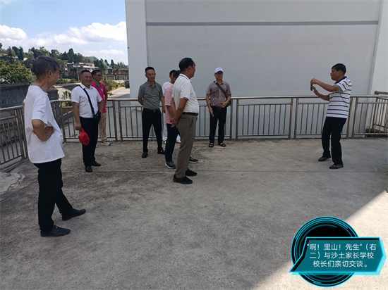 在8月27日完成了母校百年沙小的捐贈(zèng)事宜洽談后,應(yīng)金沙五中校長(zhǎng)譚孟波邀請(qǐng),8月28日上午,中國(guó)民間社會(huì)活動(dòng)家“??!里山!先生”一行馬不停蹄,與沙土鎮(zhèn)家長(zhǎng)學(xué)校多位校長(zhǎng)一起,前往金沙五中調(diào)研。