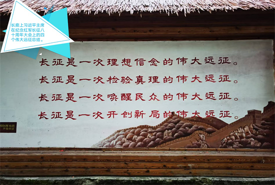 “??!里山!先生”告訴六大河欄目記者,他看著悅好山莊門口公路外墻上的這四句話,自己當(dāng)時(shí)突然就感覺耳目一新,有了一種無窮的力量,只是當(dāng)時(shí)的他,還不知道這四句話是習(xí)近平主席在紀(jì)念紅軍長征80周年大會(huì)上說的。