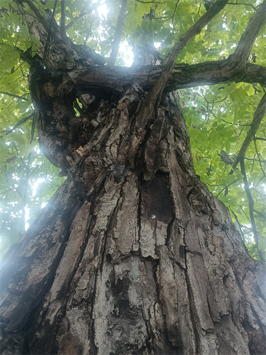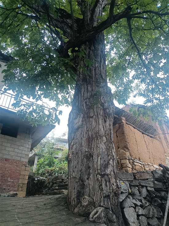 因為年輪過久,故事過多,又位于下寨組農(nóng)戶房屋之間,這棵高大、魁梧、挺拔的古核桃樹,在老家人心中,似乎早已成了神樹,人們更是親切地稱她為“劉家大核桃樹”。