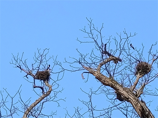 一般來說,一棵樹上出現(xiàn)一個喜鵲窩,這樣的樹相對較多,但烏龍谷這棵古核桃樹,這些年來一直都至少有兩個喜鵲窩,多的時候,甚至出現(xiàn)三個,這足可見這棵古核桃樹的巨大。
