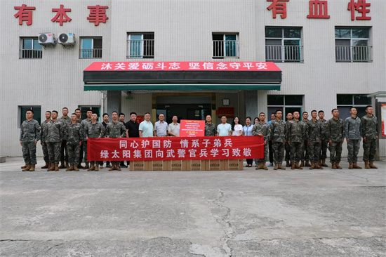 9月18日,貴州省愛(ài)國(guó)擁軍促進(jìn)會(huì)、貴州省紅十字基金會(huì)和貴州綠太陽(yáng)大健康產(chǎn)業(yè)集團(tuán)一行來(lái)到貴州武警總隊(duì)機(jī)動(dòng)支隊(duì)和武警黔南支隊(duì),分別給這兩個(gè)支隊(duì)官兵送去了貴州綠太陽(yáng)大健康產(chǎn)業(yè)集團(tuán)捐贈(zèng)的苗藥日曬防治膏,向武警官兵學(xué)習(xí)致敬。