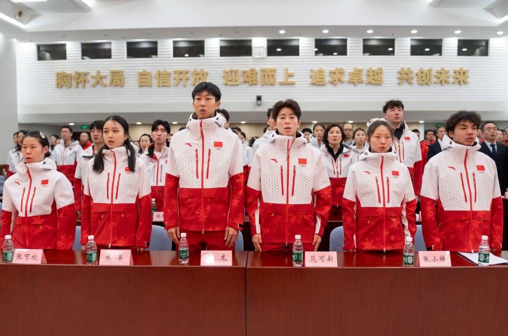 1月24日,中國(guó)體育代表團(tuán)成員在成立動(dòng)員大會(huì)上。
