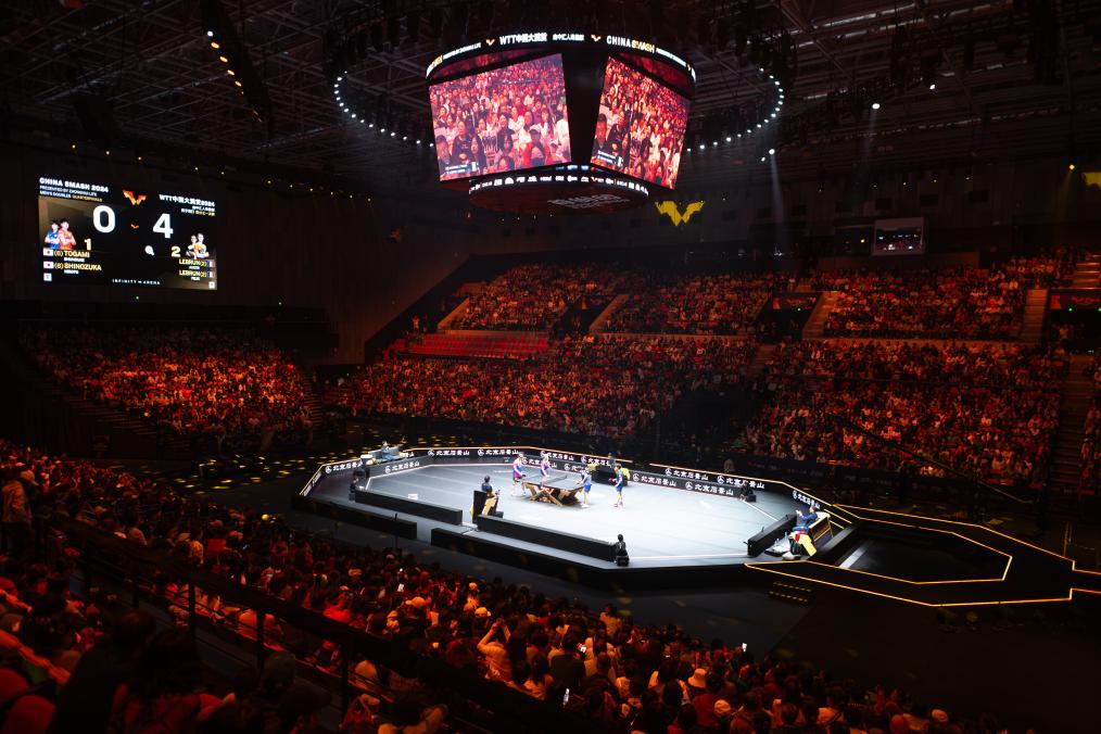 2024年國慶假日期間,世界乒乓球職業(yè)大聯(lián)盟(WTT)中國大滿貫賽事在北京石景山首鋼園舉行。(新華社記者 肖藝九攝)
