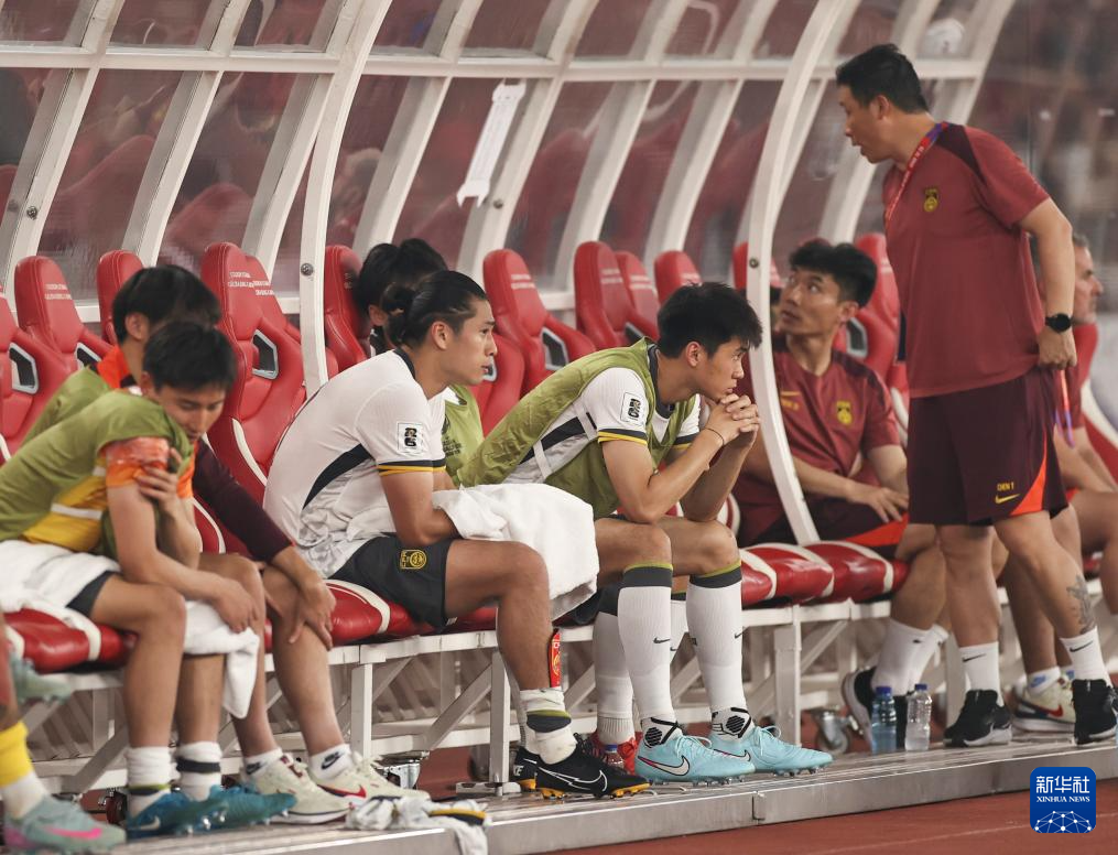6月5日,中國(guó)隊(duì)球員張玉寧(左三)在比賽中被換下后。