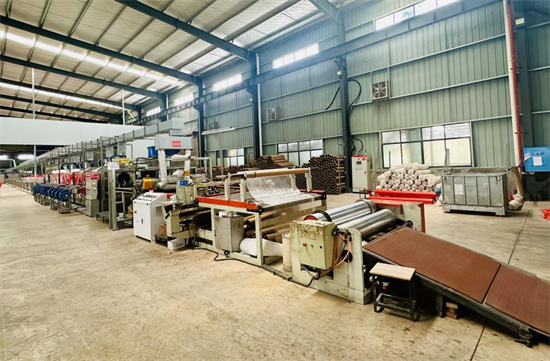 這條生產(chǎn)線不僅實(shí)現(xiàn)了日產(chǎn)5000㎡+的高效率,更通過精密控制保證了產(chǎn)品的一致性。在原材料選用上,面層采用德國(guó)朗盛高純顏料及抗氧耐UV助劑系統(tǒng),經(jīng)高比例膠體包裹及多次煉化工藝,深度著色不易遷移。