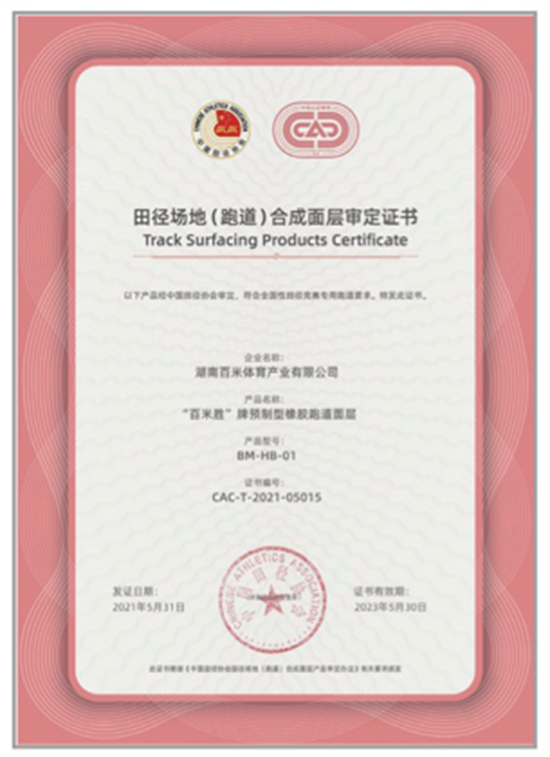 在體育設(shè)施領(lǐng)域,認(rèn)證就是通行證。百米體育同時(shí)擁有世界田聯(lián)WA產(chǎn)品認(rèn)證和中國(guó)田協(xié)審定產(chǎn)品認(rèn)證,成為國(guó)內(nèi)少有的“雙認(rèn)證”品牌。這不僅是兩張證書,更是通往高端市場(chǎng)的鑰匙。