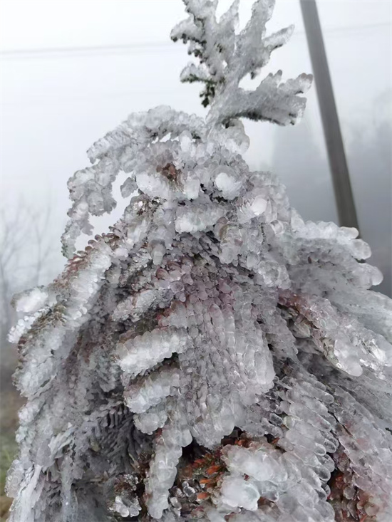 最令人陶醉的,當(dāng)數(shù)那些晶瑩剔透的霜冰。它們?nèi)缤患赖乃囆g(shù)品,鑲嵌在樹枝、草葉、巖石之上。有的霜冰如細(xì)長的針,尖銳而又鋒利,在陽光的折射下,閃爍著五彩斑斕的光芒;有的則如圓潤的珠,飽滿而又光滑,仿佛是大自然用最純凈的水晶雕琢而成。當(dāng)微風(fēng)吹過,這些霜冰相互碰撞,發(fā)出清脆悅耳的聲響,宛如一曲美妙的交響樂,為這寂靜的雪世界增添了幾分生機(jī)與活力。