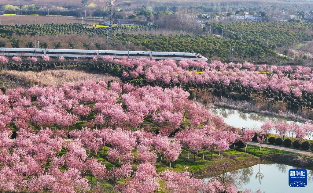 仲春時節(jié),安徽省合肥市肥東縣長臨河鎮(zhèn)合福高鐵沿線櫻花盛放,疾馳的列車與粉白相間的“櫻花海洋”相映成趣,繪就生機勃勃的春日圖景。