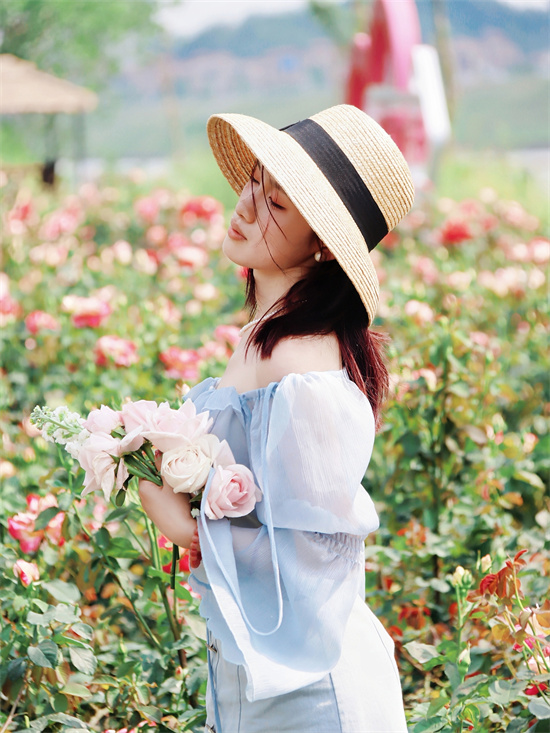 近日,長沙市鵝洲島100多個品種的玫瑰花陸續(xù)盛開,吸引市民和游客前來賞花游覽。一位來自益陽的游客對景色贊不絕口:“這里的玫瑰很漂亮,顏色也多,而且非常香,在這兒散步,真是不錯的賞花地。”手持單反相機(jī)的陳先生正在為女友春春拍攝照片,這片“花海”成為了他理想的取景地:“花海場景如夢如幻,非常出片,特地帶上女朋友春春過來拍一些照片,確實很美。”