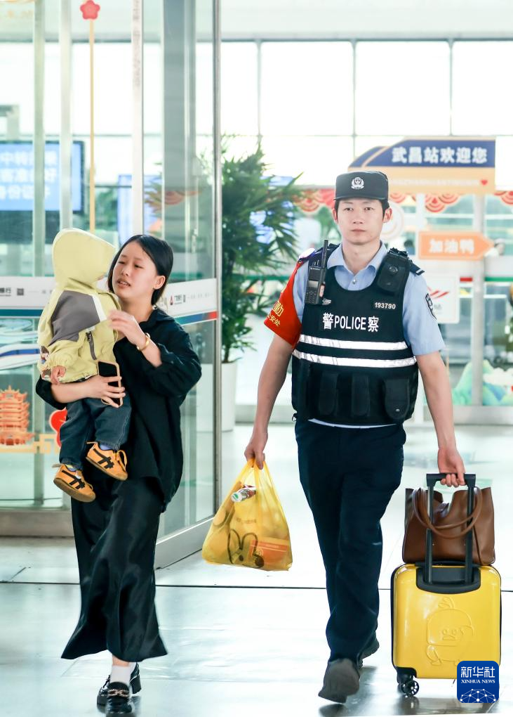 5月4日,湖北省武昌站青年民警幫助旅客乘車出行。