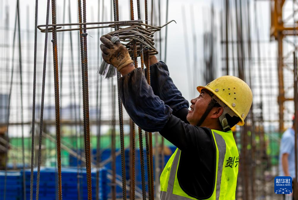 5月4日,工人在貴州省黔西市一建筑工地勞作。