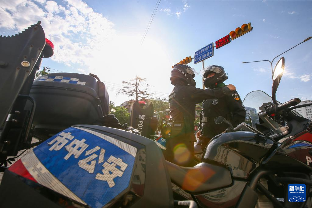 5月4日,山東省濟(jì)南市公安局市中區(qū)分局特巡警大隊(duì)青年輔警整理著裝準(zhǔn)備上路巡邏。
