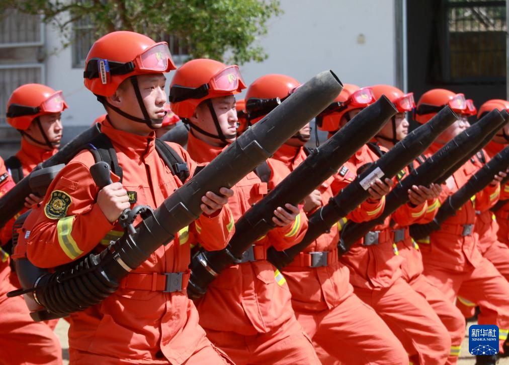 5月4日,在山東省臨沂市平邑縣森林消防大隊(duì),青年消防員在進(jìn)行訓(xùn)練。