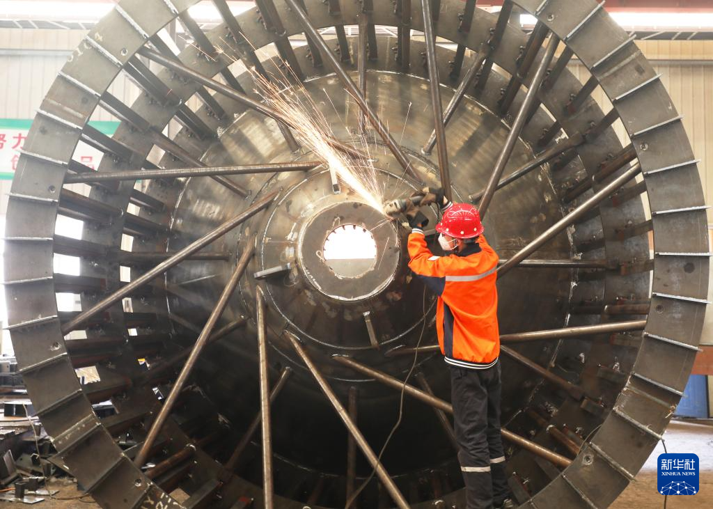 5月4日,工人在河北唐山中材重型機(jī)械有限公司生產(chǎn)車間作業(yè)。