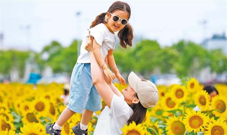 6月7日,游客在安徽省淮北市渠溝鎮(zhèn)張樓村油葵種植基地賞花游玩。李 鑫攝(中經(jīng)視覺)