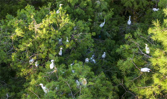 安徽廬江:聰明鷺鳥藏身樹蔭度盛夏
