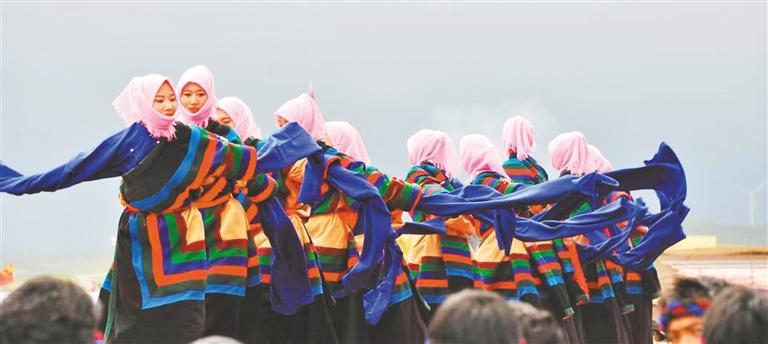 那曲市一年一度的賽馬節(jié)上,牧民在表演舞蹈。2012年以來,國家累計投資48.9億元用于西藏公共文化建設(shè),基本形成了五級公共文化設(shè)施網(wǎng)絡(luò);西藏各級公共文化機構(gòu)年均開展文化惠民活動10萬余場次,受益群眾近1500萬人次(攝于2024年8月)。