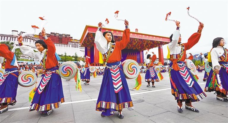 8月21日上午,西藏各族各界干部群眾約2萬人歡聚拉薩市布達拉宮廣場,熱烈慶祝西藏自治區(qū)成立60周年。潘 多攝(中經(jīng)視覺)