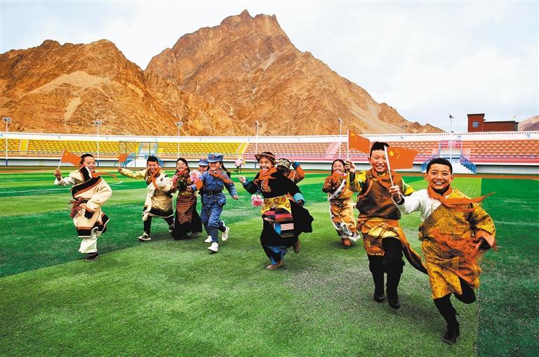 阿里陜西實驗學校學生在操場上奔跑,該學校是陜西在阿里地區(qū)援建的首所標準化學校。截至2024年,西藏共有各級各類學校3618所,在校學生總數(shù)97萬人(攝于2023年6月)。