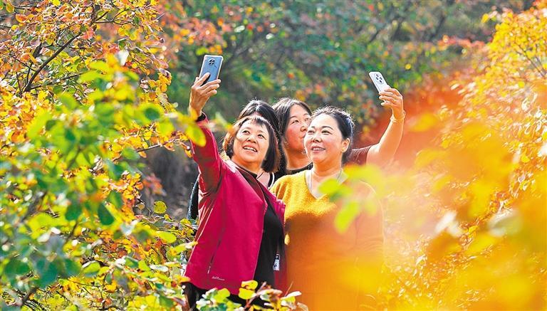 10月14日,游客在河南省禹州市鳩山鎮(zhèn)天垌村栗子園溝觀賞秋色。
