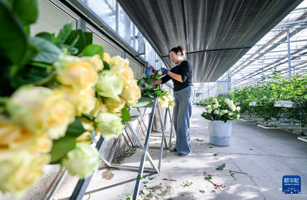 11月25日,在位于寧夏銀川市興慶區(qū)大新鎮(zhèn)的農(nóng)業(yè)高科技智慧示范園內(nèi),工人在分揀玫瑰。