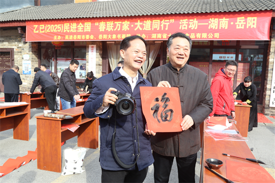 中國新報訊(記者 陳海波 張偉 特約記者 寧平)墨香迎新春 ,春聯(lián)送祝福。1月20日,2025年民進全國“春聯(lián)萬家·大道而行”活動走進臨湘市羊樓司鎮(zhèn)十三村新時代文明實踐基地,為基層村民送福、送春聯(lián),支持和引導基層文化建設,弘揚中國優(yōu)秀傳統(tǒng)文化,營造喜慶祥和的春節(jié)氛圍。岳陽市老同志郭振斌、民進岳陽市委會專職副主委汪揚參加活動。